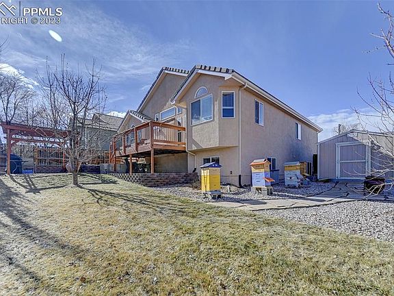 Beautiful, spacious, ranch floor plan in Fountain with an amazing backyard! This home is located on a corner lot with a low maintenance front yard, splendid back yard with fruit trees, pergola, garden boxes and much more! This home has 5 bedrooms, including two master bedrooms, one upstairs and one downstairs. Three bathrooms, a huge family room downstairs and spacious great room on the main. Immaculately cared for, this home is the essence of a home. Upon entering the home the vaulted ceilings, multiple windows are welcoming and offers a wonderful open concept floorplan, great for movie night or entertaining. Enjoy summer nights on the deck or pergola, great for gatherings or to just relax! This home has easy access to Fort Carson, I-25,the Powers corridor as well as shopping, schools and parks. It is a must see!