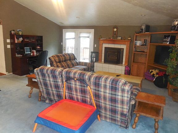 Outdoor fireplace, private yard, and deck waiting to be enjoyed. Large family with vaulted ceilings next to kitchen, separate dining area, 4 bedrooms, 2 bathrooms, corner lot, updated kitchen with all appliances included. Old time charm with coved ceilings, vintage tile, and arch doorways. Shop area could be converted back to a 2 car garage. Partially finished basement. Neighborhood is well maintained with beautiful yards.