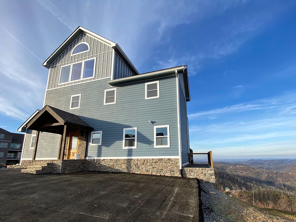 BRAND NEW Chalet Located in Chalet Village with the million dollar views! As you enter the home you enjoy these VIEWS from the living room with stone fireplace, high ceilings and wall of windows. Master bedroom is on this floor, along with kitchen and dining area with granite, custom cabinets and stainless appliances, half bath and this floor opens to a nice large deck from the living room or master bedroom. Upstairs are two more spacious bedrooms that also open to their own deck. On the third floor is a huge game room with kitchenette and half bath with walls of windows to savor the mountain views. The basement level has 2 more bedrooms, 2 baths and another huge entertainment area with kitchenette. Walking distance to pool. Seller will allow $25,000 toward furniture allowance.