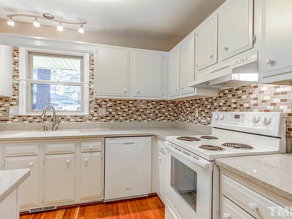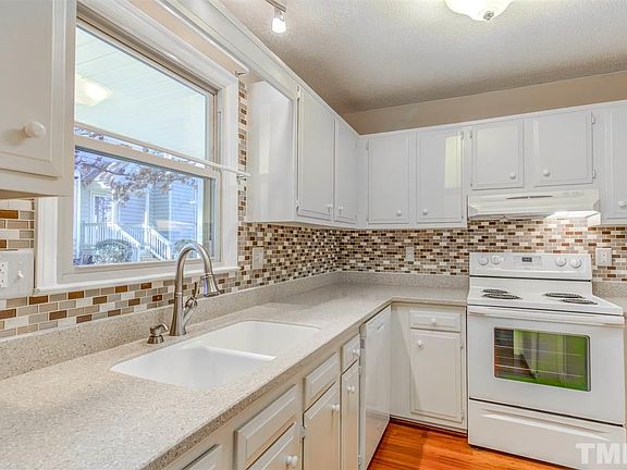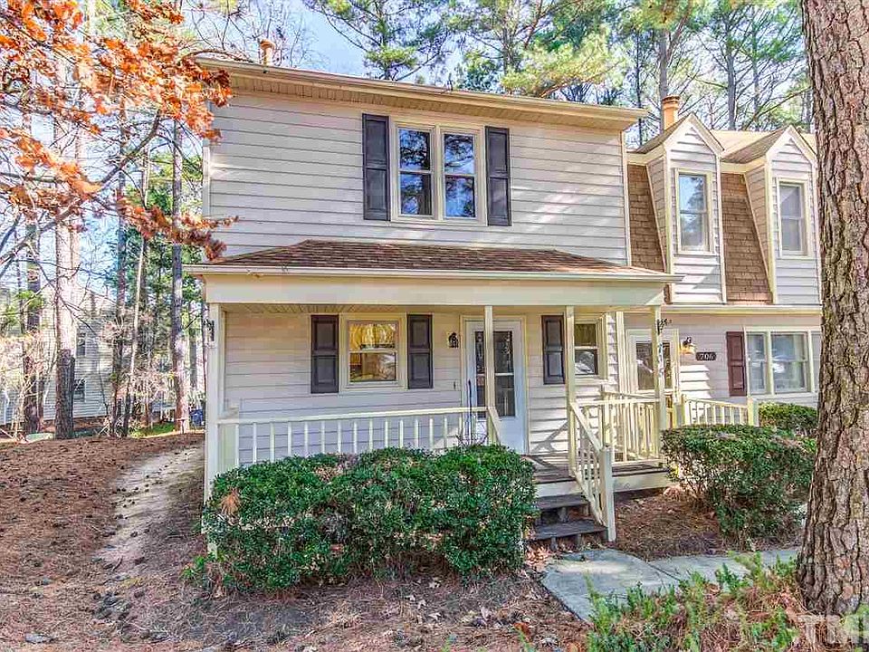 Renovated end-unit in perfect North Raleigh location, minutes from major highways, shopping & greenway trails! Gorgeous gleaming hardwoods thru main, crown molding, wood burning fireplace, newer roof & windows in '13 & brand new vapor barrier in crawl! Bright updated kitchen has corian counters, tile backsplash & plenty of cabinet space! Master suite has walk-in closet & private bath w/ updated hardware. Secondary beds share jack/jill bath. Spacious rear deck w/ storage closet + rocking chair front porch!