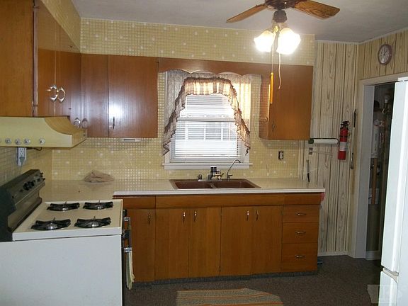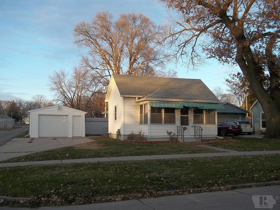2 bedroom home with permanent siding, vinyl windows, detached 1 stall garage and a large fenced yard.