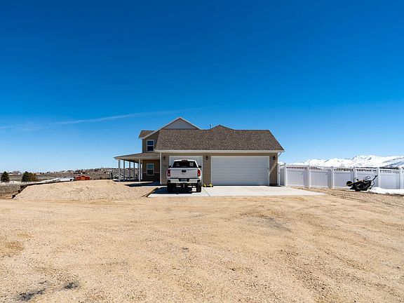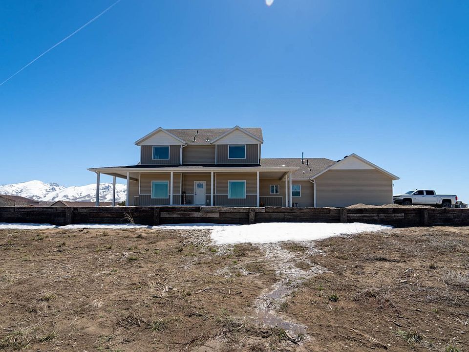This stunning home has all the bells and whistles. Just over one year old, there are tons of upgrades throughout. The living area is perfect for entertaining with the 8ft kitchen island merging the kitchen and living areas together. The incredibly high ceilings and rock fireplace are so inviting. The two pantries (one walk in with a light) provides tons of food storage. The laundry room has lots cabinets, hooks, and a basin sink to keep everything nice and tidy. The walk in shower in the owners' suite is completely tiled inside and out. It has two shower heads, including one rainfall shower head. There are two separate vanities, as well. Custom blinds, light fixtures, interior doors, and so much more! There is a 220v hook up in the attached 3 car garage, great for your RV! This beautiful property is located on a corner lot and has a circular driveway. Enjoy the gorgeous view of the Ruby Mts from your back yard complete with 6ft vinyl fencing w solar cap lighting. Both the front and back covered patios have canned lighting, too. For a full list of customized features and upgrades, please see list in associated docs. Sellers offering $10,000 to buyer's concessions w accepted offer!