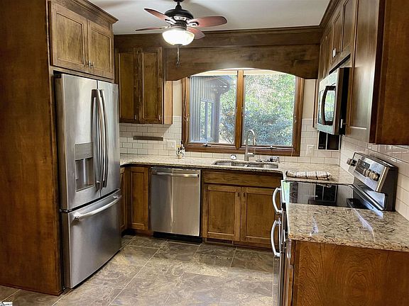 Love! Love! Love! What a unique lovely home! This 3 bedroom 2 bath home is looking for a new owner. Walk into a huge great room with vaulted ceilings and floor to ceiling windows and stone fireplace.Stay warm with wood burning stove with vents for a natural circulation. The eat-in kitchen has been updated with quartz countertops with backsplash, new appliances including double ovens and plenty of cabinets. Master bedroom is on the main floor with a bath and walk-in closet. Two bedrooms upstairs with a landing overlooking the great room. Enjoy sitting on the screened porch or deck with a wooded backyard and spectacular Koi pond with waterfalls (fish have been re-homed). If it is too cold, move over to the sunroom or climb into the state of the art hot tub with speakers, docking station, mood lighting and waterfall..You will love the feeling of mountain living but walking distance to Presbyterian College.Two car garage with room for a small workshop and a separate shed for storage. .A must see! A great neighborhood to get off that couch and take a stroll. OH! And there is a generator incase you were to lose power! Call for a showing now!