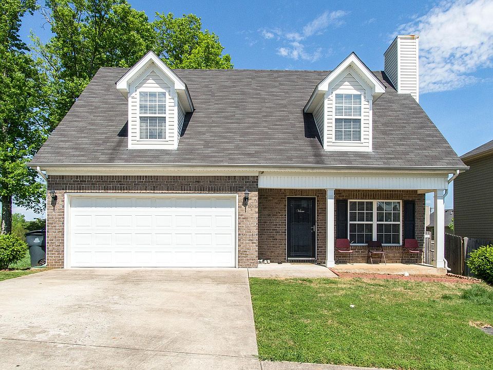 Cape Cod with Covered Front Porch. Fenced in backyard. Over-Sized bedrooms, Great Room with Fireplace, Master with Garden Tub & Double Vanity. Appliances that Remain Stove, Dishwasher, Disposal, & Microwave. Blinds Remain.