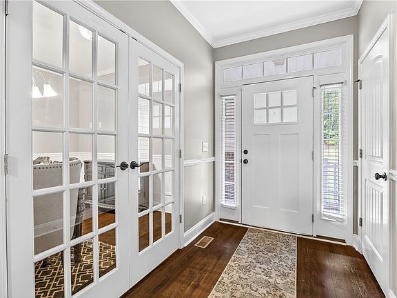 Attached garageClassic rocking-chair front porchWooded backdropDouble wall ovensEnsuite bathTile backsplashSplit floor plan