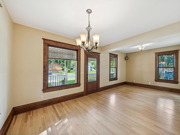 Yesterdays charm with todays convenience! You'll love the character & convenience this darling river town home has to offer. Tucked away on a quiet street near schools, parks & downtown amenities. Beautiful hardwood floors, woodwork & paneled doors. Updated kitchen with stainless appliances, tiled baths, and finished lower level family room with a cozy gas fireplace. Large mudroom, relaxing front porch, backyard deck, stamped concrete walkways, and a 2 car garage with a lean-to that accommodates the seller's truck. A delightful home in an great established neighborhood.