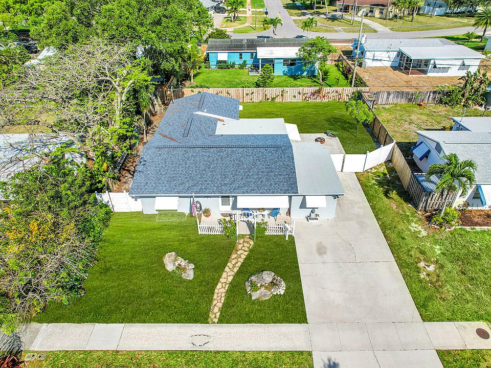 BEST PRICED HOME IN THE AREA! This 1814 sq ft 4-bedroom, 2-bath gem. is 10 MINUTES FROM THE BEACH! No HOA! Enjoy peace of mind with impact windows/doors, a new 2023 roof (Miami-Dade compliant, strapped trusses), transferable warranty, and two new A/C units (2023). Inside, enjoy a newly renovated kitchen with gas stove, microwave, dishwasher, and a sleek updated bath. Crown molding, custom trim, and ceiling fans in every room add style and comfort. Additional features include: 2021 tankless gas water heater, Newer washer/dryer, gas appliances, ATT fiber optics, and generator hookups (gas meter + 220V) Step outside to a large fenced yard, spacious back patio, outdoor shower, and attached work shed. Park with ease in the 5-car driveway with room for a boat. Listed for 15K under appraised val PRICE IS FIRM! Move in with instant equity at this already reduced price! Located in a golf cart friendly neighborhood with access to the public North Palm Beach Country Club, Jack Nicklaus designed golf course, Tennis Club, Olympic size swimming pool, NPB marina for large yachts, food trucks, BBQ, Pizza, Coffee Shops, Restaurants & Bars. Motion sensor lights all around the exterior of the home to give you peace of mind.