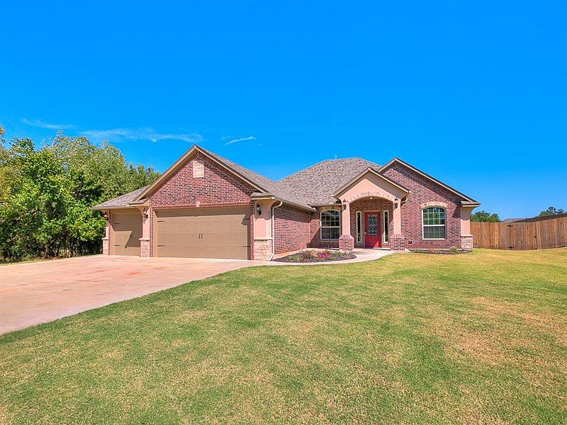 Welcome to Chickasaw Springs!This neighborhood will call your name in a heartbeat!Home sits on almost 3/4 of an acre!Peaceful,quiet and serenity!Home features:3 car attached garage with a storm shelter,3 beds plus a study,nice size kitchen,granite throughout,window treatments,fully fenced,MIL plan and an outdoor fireplace!Solid wood doors.Make this home yours today!