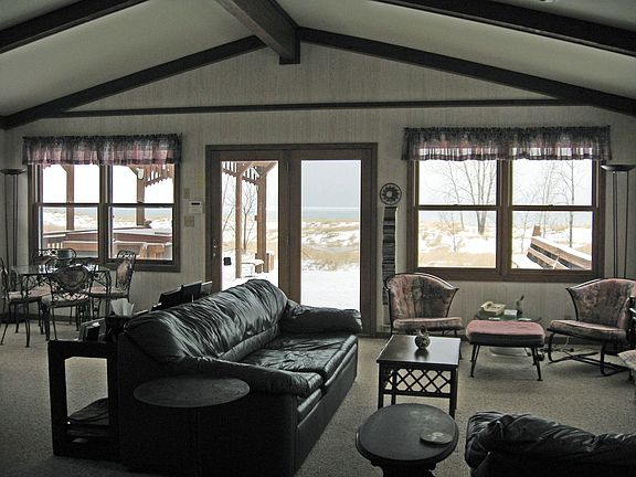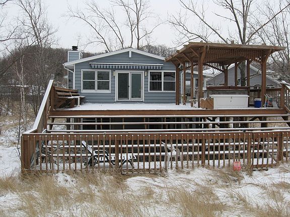Remarkable property offers more than 1/2 acre of beach with 100' frontage on the sand facing nothing but Lake Michigan. The redwood home is charming; pool house doubles as guest quarters, with 2 bedrooms, a kitchenette, FP & 1 car garage. In the home, a Great Room with brick fireplace opens onto a huge deck with incomparable views & a hot tub from which to watch the sunsets over Chicago's skyline. There are 2 bedrooms & a full bath on each level, plus a lower level family room to keep the kids busy. The pool house will keep you and all your friends entertained with a 45x10' heated lap pool, hot tub, steam shower & room for ping pong, exercise machines & more... The pool house has a Lennox Pulse hi-E GFA sytem w/AC, plus an auxiliary geothermal heat pump for keeping the bills low, & a Desert Air de-humidifier system. The house has a 2001 roof & a 2002 Lennox Elite Hi-E GFA furnace w/AC.