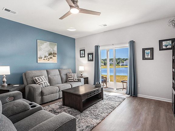 Welcome to this beautiful 4-bedroom, 2-bath home located in the Saddle Ridge community. As you enter through the foyer, you’re greeted by a spacious open layout featuring a large dining area perfectly situated between the kitchen and living room. The kitchen offers stainless steel appliances including a refrigerator, dishwasher, range, and microwave, along with granite countertops, a stylish backsplash, an island, garbage disposal, and a gas range fueled by a propane tank. The living room is bright and open with a ceiling fan and sliding glass doors leading to a covered porch where you can enjoy relaxing views of the pond. The owner’s suite is tucked away at the rear of the home and features a ceiling fan, walk-in closet, and a private bath with a double-sink vanity and walk-in shower. Three additional bedrooms are located at the front of the home along with a full bathroom that includes a tub/shower combo and vanity. The home also features durable vinyl flooring throughout, a tankless hot water heater, and a two-car garage. Residents of Saddle Ridge enjoy a community pool, clubhouse, playground, and picnic area. Conveniently located just minutes from grocery stores, restaurants, retail, schools, and the charming downtown Conway area, this home combines comfort, convenience, and modern living.