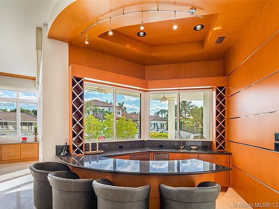 Situated at the end of a quiet Cul-de-sac this magnificent 8,642 sf waterfront estate in coveted Sun & Surf boasts breathtaking views & sits just 1 home from the Direct Intracoastal. With 163' of frontage on a 14,182 Sf lot, this private contemporary residence is bright and airy featuring spectacular ceiling height throughout & a great layout including large gourmet kitchen, formal dining room, movie theater & gym. An expansive master suite offers a sitting room, midnight bar, large bathroom, fireplace and spacious closets. Ideal for entertaining, the home's exterior amazes with a gorgeous pool, private dock & views of the ICWW. Located in a No Wake Zone & No Fixed Bridges Just minutes from the Boca Inlet for easy ocean access. Great Opportunity to Customize this home & make it your own.