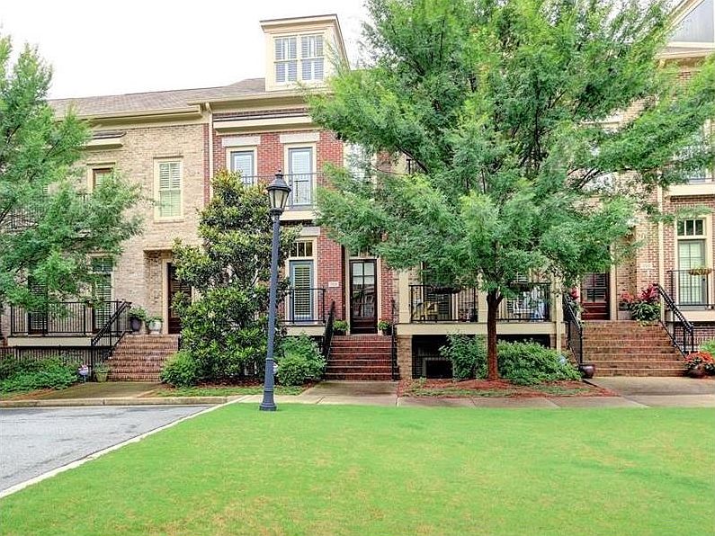 Sparkling with today's new paint colors and overlooking a serene greenspace, this 4-story, 4 bedroom home offers an open floorplan with a warm and inviting atmosphere. Beautiful hardwood floors throughout. 10' ceilings on main. Natural light in every room. Terrace level with home office/full bath can also be a man-cave, den, bedroom. Centrally located with easy access to all Atlanta has to offer or relax at home with great amenities - gated security 24/7, 2 pools, beautiful clubhouse with workout facility, dog park, walk to the river, and so much more!