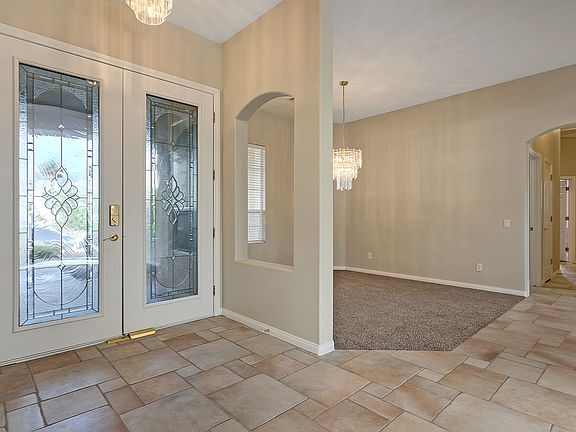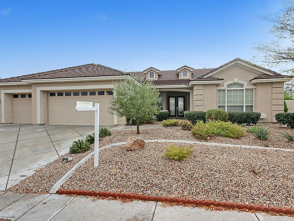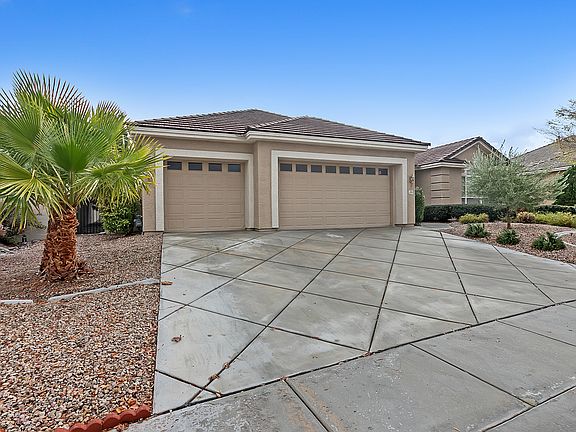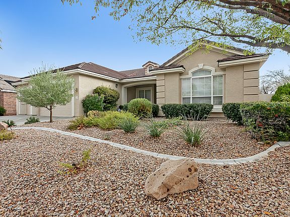 Incredible single story home with a sparkling pool located in a gated community at North Summerlin. This home features 4 bedrooms, 3 bathrooms, 3-car garage, with 2,668 square feet of living space. Terrific curb appeal with the welcoming front porch, double door entry, and beautiful mature desert landscaping. Wide foyer entry invites into an impressive formal living room with lovely architectural features as archway, designer columns, bay window, and crown molding. Foyer looks into the formal dining room on the front of the home through an arched opening. Great neutral tile flooring in entry, high traffic areas, and kitchen. The kitchen has stunning granite countertops, black appliances, breakfast bar, pot shelves, recessed lighting, pantry, built-in desk, and a kitchen nook. Adjacent to the kitchen is a generous family room enhanced with a cozy fireplace, mantel, and a ceiling fan with a light fixture. Spacious master bedroom has a chair rail, crown molding, and a ceiling fan. Master bathroom has dual sinks, solid surface countertop, sit-down vanity, water closet, pot shelf, tub, and a walk-in shower. Home is finished with a large covered patio, sparkling pool, lush landscape, and artificial grass. It is conveniently located close to Interstate I-215. Contact us NOW for further details and viewing appointments. Zillow Inc. has a real estate license in this state.