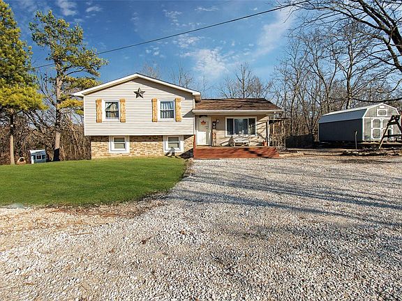 BOM-NO FAULT OF SELLERS! UNIQUE FARMHOUSE Tri-Level on acreage in the Wentzville School District! (It even has a She-Shed!) RENOVATED throughout w/too many updates to list! New luxury vinyl throughout, freshly painted, shiplap, barn doors, upgraded beautiful granite, soft close 42" cabinets, & stainless appliances including farmhouse sink are just the beginning! Refinished center island to stay. Upstairs bath has a rare Victorian refinished wash basin & new shower/tub insert. LL has wood burning stove w/galvanized accent, half bath & laundry area w/barn door. Slider leads out to patio area w/private tree line. "She Shed" w/electric & newly added French doors. Addl shed for storage. 60 tons of gravel poured for extended driveway 40 ft x 40 ft - perfect location to add a garage! Updated plumbing, lighting & electrical panel. Updated stone front & composite stairs! NO RESTRICTIONS! 1 YEAR CINCH (HMS) PREMIUM HOME WARRANTY! ALL FURNITURE & DECOR ITEMS ARE NEGOTIABLE WITH SALE OF HOME!