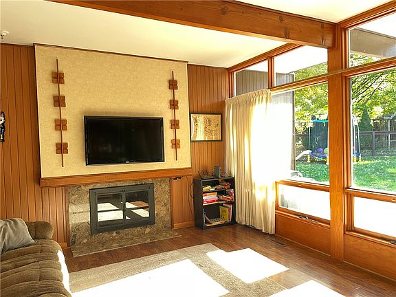 Welcome to 708 E. Hazelcroft Avenue! Designed by the previous owner, a local architect, this 3 bedroom Frank Lloyd Write style rancher has many unique attributes that make this a distinctive "one of a kind homestead" Features include a custom built floor to ceiling window wall in the living room with redwood interior walls and trim that highlight the end wall log burning fireplace. The contemporary kitchen cabinetry provides function with ample storage. Built-in appliances add utility and convenience and the main floor laundry is a welcome benefit. The primary bedroom boasts a room length wall closet with an opposing wall half height windows set. The L-shaped basement is finished and boasts a stone dividing wall between the main room and wet bar area. The exterior boasts redwood cladding, fenced pet area, brick patio, and a glorious 3 season room. Home ownership maintenance records are available upon request. Don't miss out on this stunning residence!