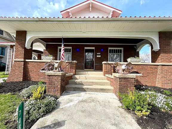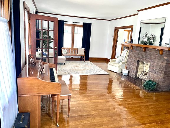 Step onto the inviting front porch, where the charm of distinctive architecture is evident in every detail of this beautiful home. Entertain your guests by welcoming them inside the large living room, complete with a fireplace and original hardwood floors. French doors connect and open to reveal a beautiful dining area that provides the perfect space for hosting. The kitchen features newly painted cabinets, offering a fresh look to the space. A full, finished basement offers 600 additional feet of finished space along with a 13x9 laundry room. Modern light fixtures throughout illuminate the space and add a touch of contemporary flair.