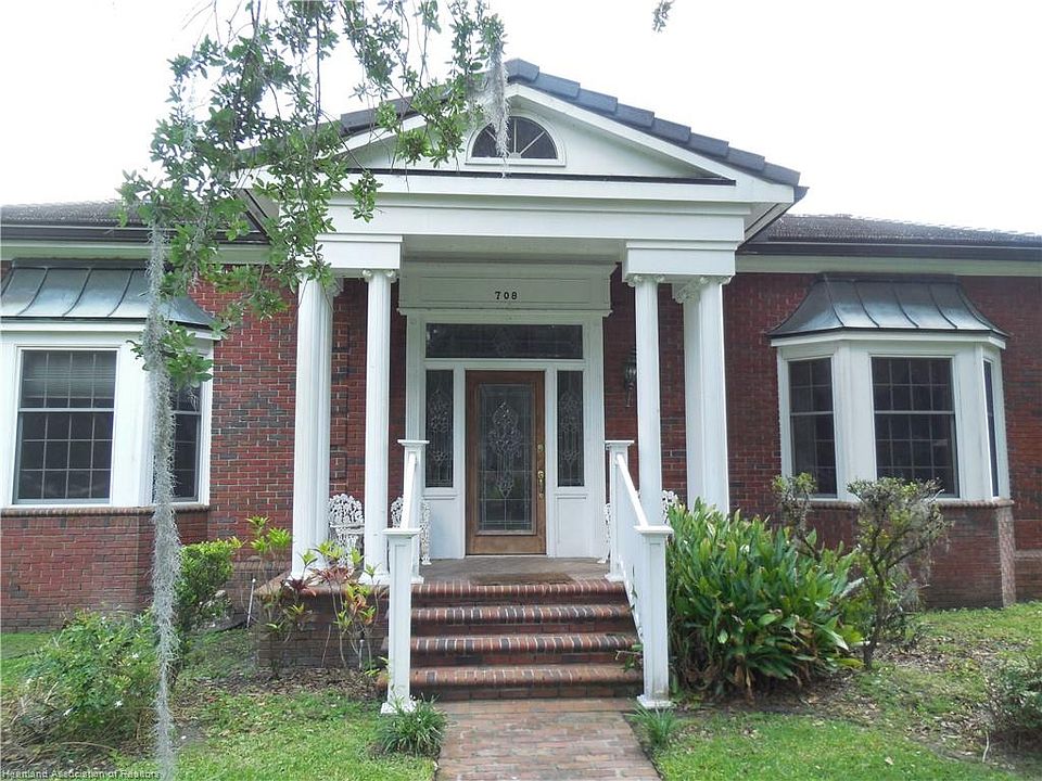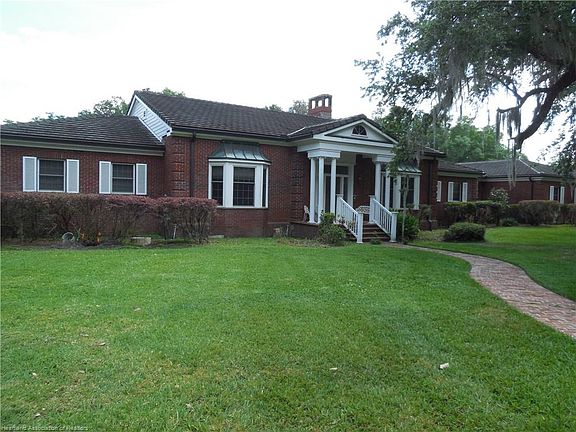 Magnificent brick home on 4.80 beautiful acres in the city of Wauchula. This grand home has two master suites with his and hers separate bathrooms , his and hers walk in closets and a bay window to enjoy the view of the granddaddy oak trees shading the front yard. This spacious home has a grand entrance through the stately columns into a 15x8 foyer with beautiful marble tile floors that lead into the massive family room with high ceiling and natural light from skylights and double French doors. You can find a warm place in front of the gas fireplace for those romantic nights. Through the French doors is a 57x10 screened terrace with a built in gas grill, sink and tiled countertop space to prepare the food. What a home for entertaining! The spacious kitchen has many wood cabinets, an island with a Thermador cooktop, wall oven and microwave, a Frigidaire Professional French door SS refrigerator, double kitchen sinks, trash compactor, SS Kenmore dishwasher, Corian countertops and double pantries. Tray ceilings throughout the house and crown molding, built in cabinets in the den and beside the fireplace. The laundry room is just off the kitchen and has plenty of storage as does the rest of the house. The garage has two large 14x12 storage rooms or workshops . As you walk into the garage toward the kitchen entrance there is a private guest room with a full bathroom separated from the home for privacy to come and go without interrupting anyone. New oak floors, paint and knockdown has been recently done. Roof was replaced in 2011, 3 Trane AC units have been replaced in 2014, one older one still remains. The sprinkler system is on well water and has 8 different zones. Beautiful exterior lighting around the home keeps it well lit at night. This is a spectacular home that you must see to appreciate for yourself!