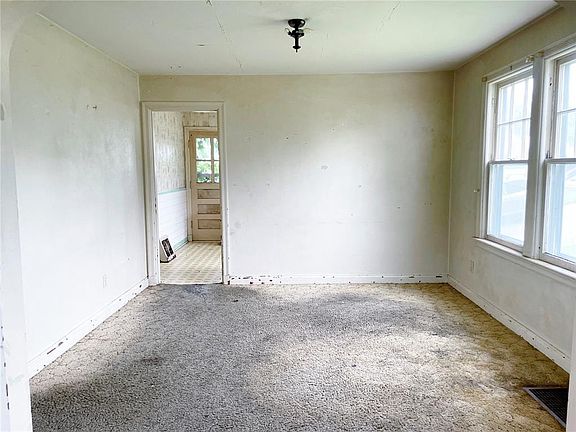 This could be a cute bungalow home! Wood floors, neat original trim and doors, full unfinished basement with garage door that leads out to the back yard. Living room, dining room, kitchen with side door to side porch and pantry, 2 bedrooms and 1 full bath. This home needs some TLC but a lot could be done with just cleaning up the wood floors and painting! Laundry is in the basement. New roof and newer natural gas furnace. Seller is selling as-is and will do no repairs.