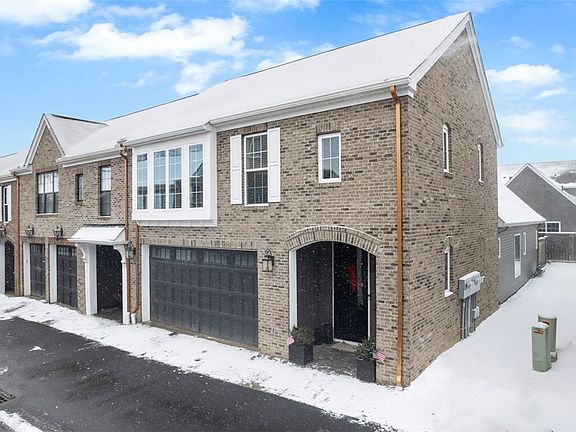 Welcome to 708 England Rd, a stunning end-unit Webster-model carriage home in Meeder, Cranberry's most exciting community with your favorite brewpub, coffee shop, boutique and more still to come just steps from your front door! This 3-bed, 2.5-bath home offers style, convenience and thoughtful upgrades in just a 2-year-old build, featuring a MAIN FLOOR OWNER'S SUITE and a private fenced-in yard. Step inside to beautiful and resilient vinyl plank floors throughout the entire main level. The classically styled kitchen features gold fixtures, an apron sink and a breakfast bar peninsula that opens to a large combined living-dining area. The owner's suite offers his-and-hers large closets, a floor-to-ceiling tiled shower and double sinks. The private fenced-in patio has been upgraded beautifully by the current owner with stylish pavers and stacked stone. Upgraded carpet and a newly renovated guest bath serve the 2 bedrooms upstairs. Washer, dryer and whole-house humidifier included!