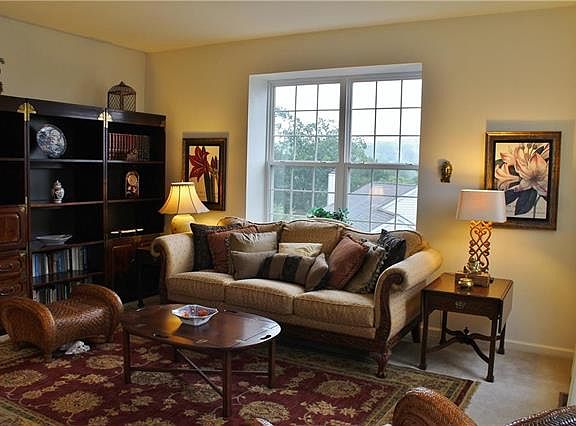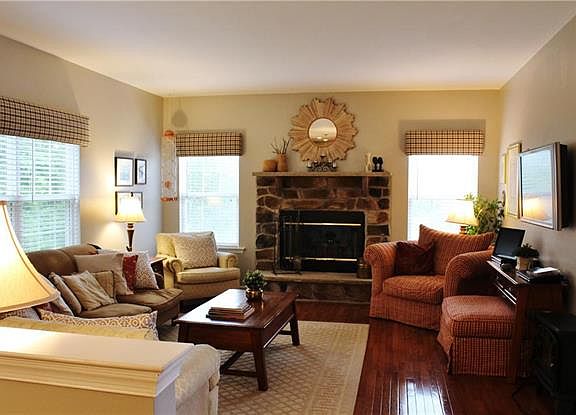 Stone front, French Country style home in quiet cul-de-sac. Premier, upscale golf course community. Amenities include tennis, swimming, golf, pro-shop and children's park. Good schools. Enjoy panoramic views including Shawnee Mountain ski slopes! Immaculate home with lots of storage, a total 3600 sq. feet of space including 4 bedrooms, 2.5 baths all light and bright! Oversized Master Suite has a sitting area that can also be a first time nursery. Ensuite bathroom has large jetted tub. Open floor plan perfect for family living. Beautiful Kitchen has plenty of cabinetry. oversized Center Island and Butler's Pantry. Family Room with Wood Burning Fireplace, Formal living room and dining room with double entry foyer, 2 car garageVery private, ample rear deck backs to woods and a trickle of a stream! Laundry/Mud room opens to back yard. House also has a fully finished walk-out basement and an ample back yard with lots of possibilities.