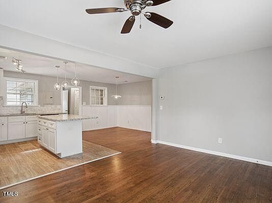 Highly desirable updated 4 bed 2 bath brick ranch in hot ITB location. Hardwoods throughout most of home. Sunlit family room. Separate dining area. Renovated eat-in kitchen offers granite countertops, center island, stainless steel appliances & tile backsplash. Primary suite has walk in closet. Updated hall bathroom. Fenced backyard with firepit. Fantastic 20x20 detached 2 car garage with 100 amp service. Circular driveway. 7 minutes to Downtown Raleigh!