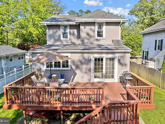 Rare opportunity to own a 4-bedroom home with wood floors, a full basement, huge yard and back deck for under 650k in wonderful Haddonfield! Great property and convenient location, too, makes this the best value in town! Just blocks from the Patco train to Philly and restaurants, ten minute drive to Center City, and five minutes to Wegman's Shopping Center. In the Blue Ribbon Award-Winning Tatem School, this home is also much bigger than it appears. Covered front porch, spacious foyer and tons of natural light throughout this home! Wonderful flow on the first floor and great space for entertaining. Large living room with hardwood floors and fireplace, flanked by built-in bookshelves and windows. Beautiful dining room, with glass French doors, flows right into the family room addition where sliding doors lead to the huge back deck and backyard- al fresco dining!! All white eat-in kitchen with tons of cabinets, white appliances, gas cooking, exposed wood beams, peek through window into the family room and great natural light. Huge bonus on the first floor is a bedroom with hardwood floors, and a big closet- or, use this as the coveted home office! Second floor has spacious bedrooms, replacement windows throughout and good closet space in all rooms. Spacious hall bath with new white sink and vanity, big linen closet, white tile floor and window. Basement has good ceiling height, sump pump, partially replaced sewer line, and is used for storage now- could be finished by the next owner. Wonderful value for the size and location in Haddonfield's excellent school system, famous downtown spots like King's Road, Gass & Main Restaurant, Meraki Market and Children's Sculpture Zoo! Great value to get into this amazing town and home!!