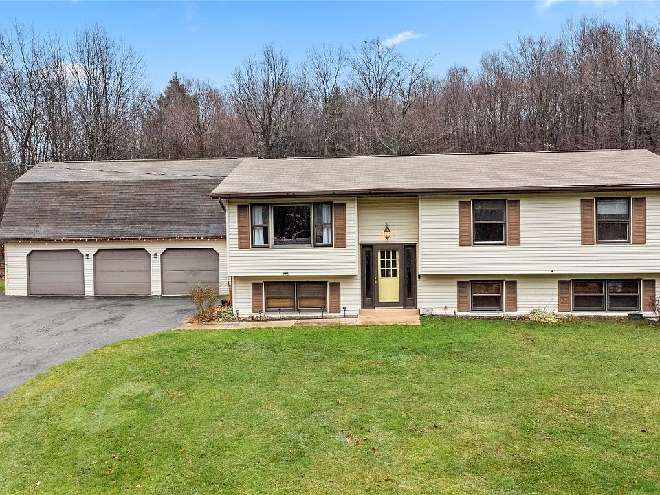 OPEN HOUSE THIS SUNDAY DECEMBER 3rd. 12-1. Turn down the long driveway to visit this PRIVATE slice of Heaven. Welcome home to this 4 bed 2 full bath split level sitting on a stunning 10 acres with a large back deck for you to entertain all spring and summer long. From the deck enter an oversized three car garage with a separate space above ready to be finished. Private spacious walk out basement and newer hot water heater and furnace. Call to schedule your showing today!