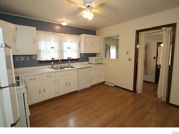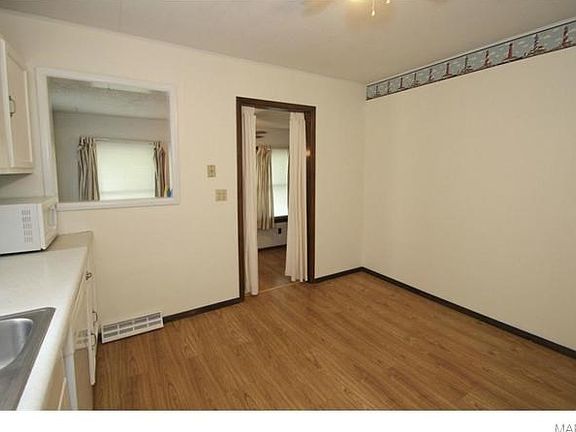 Charming ranch home in quiet Festus neighborhood. Has open floor plan, eat-in kitchen and all appliances stay, including washer and dryer. Updates include newer roof, newer HVAC, brand new sewer lateral, and new laminate flooring. The cute sun porch brings in a lot of natural light and a great view of the fenced backyard. Move in ready with a home warranty included.