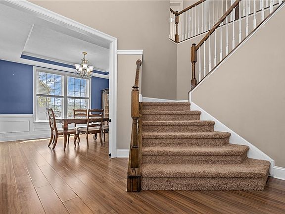 Stunning home in Canon McMillan SD with brick-front, coined corners, & large, level yard. Features a grand two-story foyer w/waterfall staircase & 9' ceilings on the first floor. Dining room showcases a tray ceiling, crown molding, chair rail, & panel molding. Gourmet kitchen boasts cherry-stained cabinetry, island w/pendant lighting, tile backsplash, stainless steel appliances, gas range, & granite countertops. The kitchen seamlessly flows into a morning room w/cathedral ceiling & wall of windows. The great room features gas fireplace, recessed lighting, & large windows. Main floor includes an office & laundry room with cabinetry. The primary owner's suite is a true retreat, featuring 2 walk-in closets, tray ceiling, & ensuite bath w/dual vanities, garden tub, & separate shower. The expansive lower level offers endless possibilities w/rough-in for full bath, ready to be customized. Easy access to RT 19, I-79, Southpointe business center, shopping, dining, & entertainment.