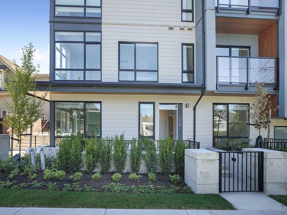 A must-see. fantastic brand new 1 Bed Townhome with a Large Private Patio. best 1-bed corner unit in the complex. Quartz counter, stainless still appliances, laminate floor, and a large walk-in closet. One parking stall(EV ready), and a storage locker.Amenity room, GYM, and small playground area. Build by ADERA, the award-winning developer. Construction is with CLT, SmartWood, to lessen the noise between homes. Walking Distance to Burquitlam Skytrain Station, shopping, Safeway, and Parks.GST has been paid. TWO storage #40 and #41. Parking #4EV