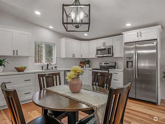 This stunning remodel features, three bedrooms, two bathrooms, new kitchen cabinets, quartz, countertops, stainless steel appliances, including washer, and dryer, open, living concept, new hardwood floors, custom tile work in bathroom & kitchen & spacious deck perfect for BBQing & entertaining. Situated on a meticulously landscaped, fully fenced lot with a detached garage (EV parking charger). Nestled in the picturesque town of Gold Bar, this property boasts breathtaking mountain views that will leave you in awe. The City of Gold Bar has plans to pave the front road by summer.