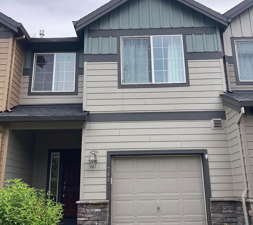 2-story Craftsman Townhouse. 3 bedrooms, 2.5 bathrooms, 1619sf. Attached single car garage. High ceilings throughout main area. Downstairs features a half bathroom, the Living room with gas fireplace and dining area with siding door leading to the fenced backyard. Kitchen has engineered hardwood floors, refrigerator, gas range/oven, dishwasher, microwave and pantry. Island boasts custom made raw edge granite with matching counter tops, pendant and recessed lighting. Upstairs finds the Master Suite with recessed 9ft ceilings, walk-in closet and bathroom with double sinks and a large walk-in shower. Two spare bedrooms and full bathroom plus Laundry closet with built-ins. Fenced backyard with patio. AC, Washer/Dryer included. Accepting Co-Signers No Pets HOA maintains the front yard.
