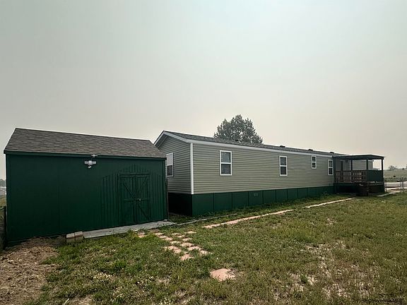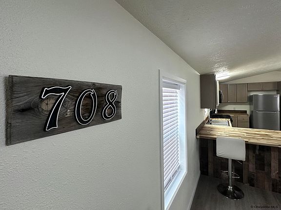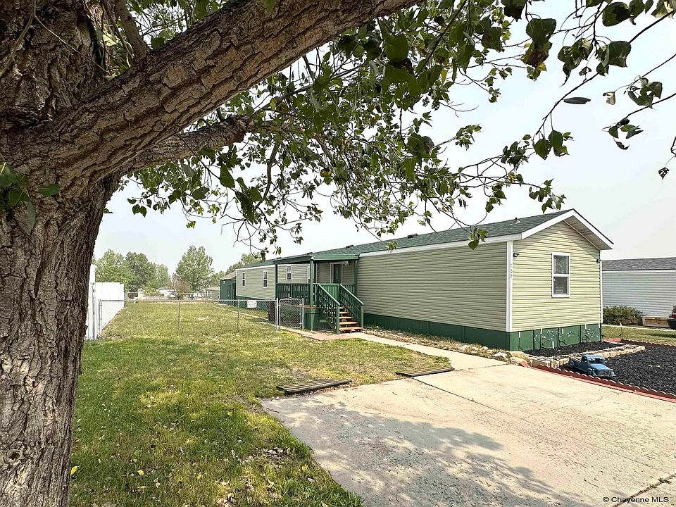 4 bedroom, 2 bath, Oversized Shed, Fenced-In, New Roof, 1200 + sqft, and the cool lights. wow. A deck w/ceiling, the new mulch bed, closets in every room, and the green tone match. wow x2. This home is in one of the largest mobile home parks in the capitol of Wyoming. The local community park and the laundry units - great for the kids! The deck faces the sunset but covers you from the midday sun! The double shed is 15 x 11, plus 6 x 7. The high ceiling, ceiling fan, and custom wall are nice too. Schedule a showing with your trusted realtor and find out if the keys become yours!