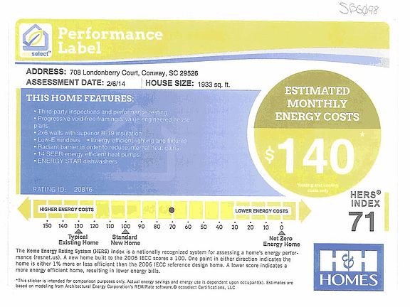 Cedar floor plan. Eco friendly home with standard features such as 2x6 exterior walls, 15 SEER heatpump, granite countertops, hardwood floors, stainless steel appliances, crown molding, insulated garage doors, security system, irrigation system, and to top it off, free lifetime golf with the purchase of a new home from H&H Homes. Through the ecoSelect certification program, all H&H Homes are designed and built to be healthier, more comfortable, and more energy efficient than energy star! Come out and see the difference! Move in ready! Ask about the awesome incentive on this home!