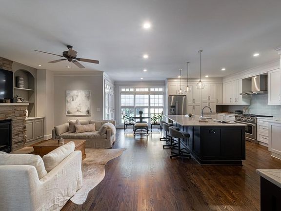 - Kitchen Features: Breakfast Bar, Eat-in Kitchen, Pantry, View to Family Room, Stone Counters, Kitchen Island, Breakfast Room, Cabinets White
