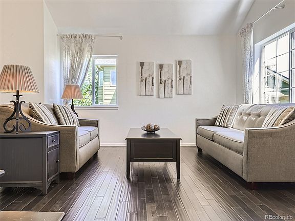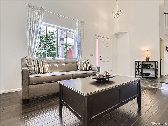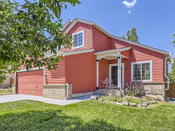 This 2-story in Canyon Creek has an excellent, easy living floorplan! Located at the end of a cul-de-sac, the location can't be beat! The main floor features formal living and dining rooms with vaulted ceilings. The kitchen has a breakfast nook, large center island, and butcher block countertops. Just off the kitchen is the family room with gas fireplace. Rounding out the main floor is an office with french doors, an updated 1/2 bath, and the laundry with washer & dryer included. The upper level offers the generous primary bedroom suite with sitting area that opens to the private deck with mountain views, an updated 5-piece bath, and a custom walk-in closet. 2 additional bedrooms share an updated 3/4 Jack & Jill bath. The basement has been finished to include a family room, bedroom, updated 3/4 bath, mechanical room, and plenty of storage space. 520 sqft, 2 car oversized attached garage. The private back yard has a deck and garden boxes plus a sprinkler system with drip lines. New roof, driveway, and carpet in June 2023. Radon mitigation system in 2022. Water heater in 2021. A/C and high efficiency furnace in 2013. Walking distance to Red Hawk Elementary school, and the park at the end of the street with a new playground. Conveniently located to multiple restaurants, shopping options, Erie Community Center, and I-25 & Hwy 287 access.