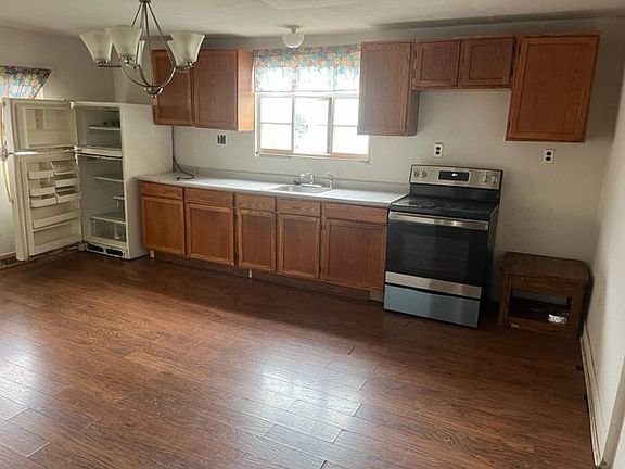 Cute starter home with lots of extras. Large bright kitchen with access to backyard. Off street parking in rear. Mostly new flooring throughout. New furnace, updated electrical. Home needs some TLC. Roof and some windows need replaced. 2 large bedrooms and full bath upstairs. Large front porch. Home being sold as is. With some work it would make a great addition to your rental portfolio.