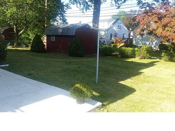 Home for the HOLIDAYS! Welcoming and inviting is what you will find through out this home. Hardwoods redone, sun drenched living room with bay window, dining room waiting for the holiday gatherings. Eat-in kitchen with-out side entrance to driveway. Gathering room with three season room leads to manicured backyard with new patio and shed. Driveway is new and will accommodate several vehicles. The second floor offers a newer bathroom and good size bedrooms with lots of closet space. C/A (2012)and fresh paint, replacement windows. The basement has a laundry room and hobby space plus a large partially finished area with tile floor and wood burning stove. Hot chocolate sounds good huh? Convenient to everything. Pack your bags and move right in. THIS IS THE ONE YOU HAVE BEEN LOOKING FOR!!!!!!!