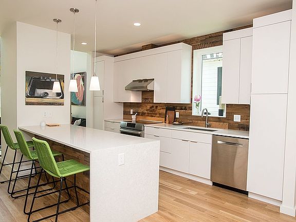 Only a short walk from the downtown Mall, Belmont restaurants, and public transportation. This modern house can be enjoyed completely on the first floor, with great light and a loft office for daily use. The south facing double height living room brings in the light and makes the space feel large and inviting. With reclaimed interior wood cladding from Mountain Lumber, the house is modern and yet still warm.
