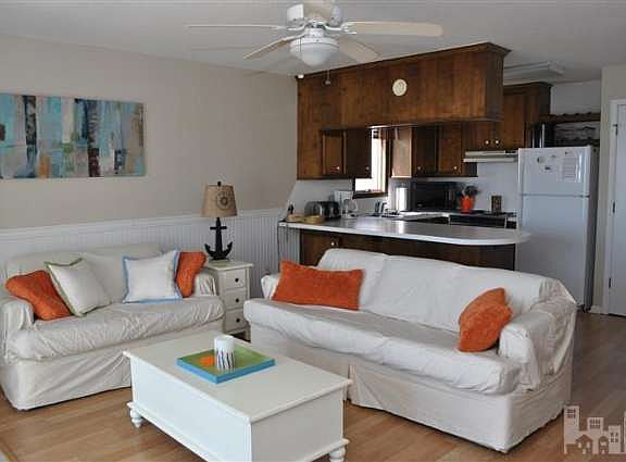 A beach haven is one of life's purest pleasures. You can truly relax in this 2 bed, 2 bath fully furnished condo. The style is easy and reflects the hues and textures of coastal living. Take in the gorgeous ocean views from your large deck and open concept living area. Kitchen has solid walnut cabinets and is fully equipped for anything from daiquiris to lobsters. Keep calm, you are at the beach. No rushing to get a good spot for your beach chairs. Savor that cup of coffee before heading out on the private walkway to the uncrowded wide sandy beach. This location has the solitude you are looking for, yet walkable to the boardwalk and restaurants. Condo is renovated with eco friendly bamboo flooring with silent walk pad, Italica tile in bathrooms and foyer, berber wall to wall in bedrooms and wainscoting in living area. Upgraded/new items also include: composite oceanfront deck, exterior storm and entry doors, wood stairwell and landings on building, and vinyl siding on building.