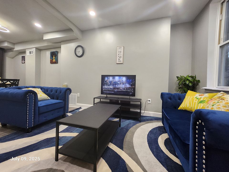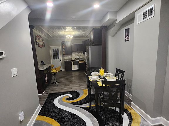 Beautifully renovated top-to-bottom, three-bedroom, three-and-a-half-bathroom Townhome at the heart of East Baltimore's Johns Hopkins Staff & student community. Step into an open-floor vinyl main level with stunning living room, a large dining area and newly installed kitchen featuring beautifully crafted ceilings, custom kitchen backsplash and stainless appliances topped by large dark cabinets. A half-bath and designated laundry area completes this floor convenience with plenty of natural light. Upper level has 2 ensuite bedrooms, each with full baths. Lower level offers a large recreational area, a 3rd bedroom and full bath or make the entire lower level your private haven. Your Choice! All permits were pulled. A generous backyard for your grill and outdoor needs. Off street parking on the front and more parking on E. Madison. A prime location close to Johns Hopkins Hospital, Johns Hopkins Bloomberg School of Public Health, Johns Hopkins Medical Campus, University of Maryland Baltimore and University of Baltimore. Just steps away from the North East Market, restaurants, groceries and everything else. Convenient to several bus routes, Metro, Downtown and major highways. GRAB YOURSELF A FURNISHED ROOM BEFORE IT'S GONE