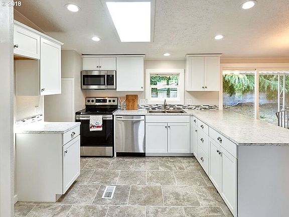 Nicely, remodeled and updated home! The exterior has a new roof & paint. The side and back yard is fully fenced with many established trees and plants with new front lawn. Interior has been freshly painted. New lighting, doors, flooring and furnace. The Kitchen has stainless steel appliances, new cabinets and counter top. Both Master and Guest Bathroom have a new tile shower with new bathroom vanities.