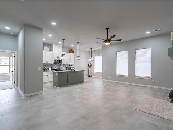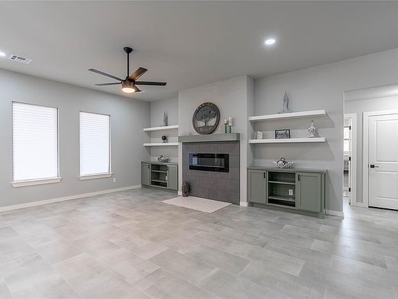 Welcome to contemporary living at its finest! This brand-new 3-bedroom, 2-bathroom home, complete with an office, is ideally situated near OKC's thriving Chisholm Creek, offering unparalleled convenience for shopping, dining, and entertainment. Step into the heart of this abode, where the kitchen showcases stylish backsplash accents and designer light fixtures, harmonizing modern aesthetics with functionality. The inviting living room is centered around a cozy fireplace, complemented by custom-built shelving on both sides, providing ample storage and enhancing the room's charm. Unwind in the primary bedroom, featuring a spa-like walk-in shower, double vanity, and a spacious walk-in closet, offering the luxury and comfort you deserve. Embrace the epitome of modern living in this thoughtfully crafted home, perfectly positioned near Chisholm Creek's bustling amenities, promising a lifestyle of convenience and contemporary elegance.