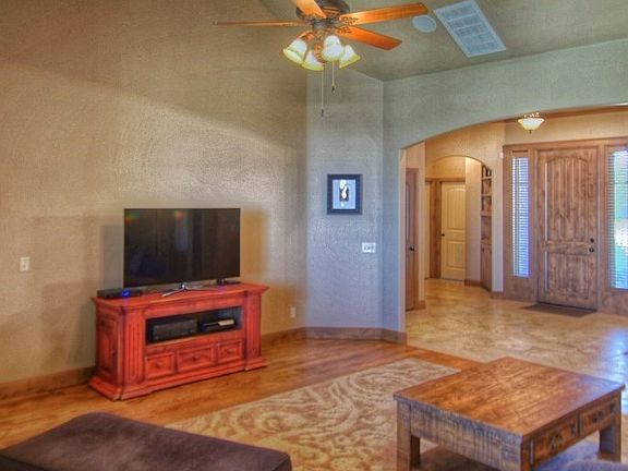 Oversized front porch welcomes you to your next home! True 4 bed design! Your living room features vaulted ceiling with beam and wood floors. Entertaining will be a delight in this kitchen with center island, pantry & large breakfast area. Walk-in shower and jetted tub in the master suite. Built-in mud bench. Wired for surround sound. Plenty of room in the backyard with extra large side area. Community pool and walking trails. Welcome home!