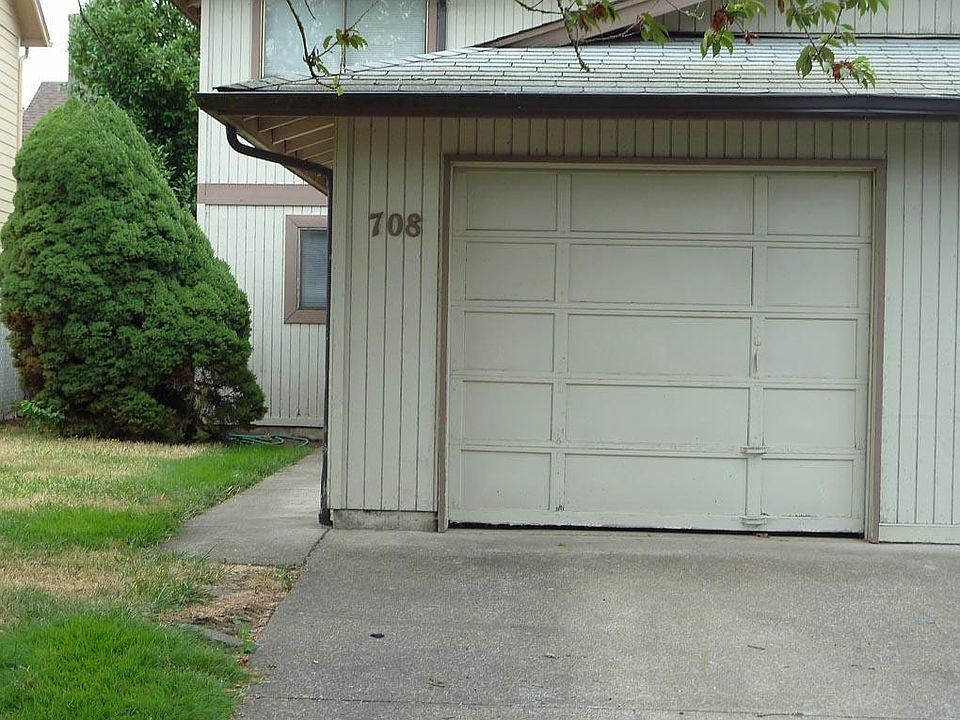 The duplex is very clean and in excellent condition. Newer laminate flooring installed on the main floor. Carpets in the upstairs bedroom are also newer and in good condition. Appliances include oven-range, refrig, garbage disposal, and diswasher. There is a small backyard which is completely fenced and lockable. Heating is electric and there are solar panels on the roof to defray the cost of electricity. The small lawn have an automatic sprinkler system. The single car garage has an electric garage door opener. There are hookups in the garage for a washer and dryer. There is off the street parking in front of the garage. A year long lease in required. Upon occupancy first and last months rent is required along with the refundable security deposit. Pets are not allowed. There shall be no smoking on the property. Tenant pays for all utilities. Tenant cares for the lawn and the patio area in the back.