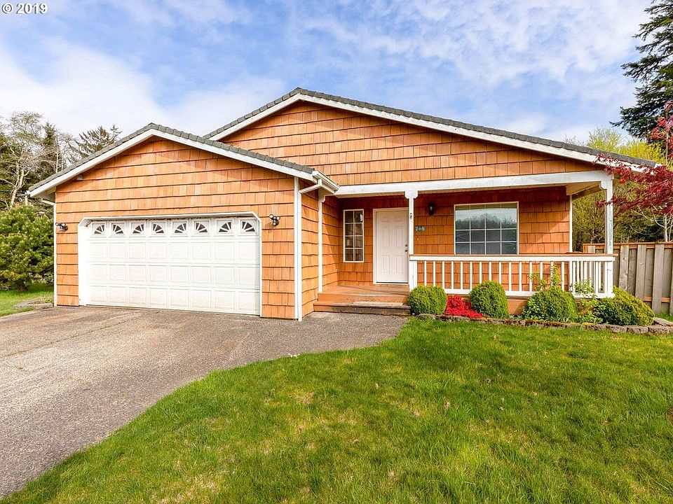 Art Deco dressed down for the beach! Modern simplicity & casual elegance combine on .5 acres that backs up to nature conservancy. Large yard with dog kennel, fenced in garden, storage shed and space to play. The fully remodeled black & white tiled kitchen with island is a glamorous backdrop to the open concept living area. 4BR + den on an oversize lot in a lovely cul-de-sac. This pretty package with an attractive price is a stand out!