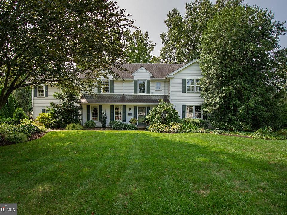 Classic, painted brick two story colonial on a private street with minimal traffic. Enter into a gracious center hall foyer that opens to the elegant living room with fireplace, home office with built-ins, and formal dining room with beautiful millwork. In the dining room, the door to the basement has been cleverly hidden behind a matching panel. Push on the panel and the staircase to the unfinished basement appears. The rear of the home has been completely opened up with a large kitchen open to a breakfast room and the family room addition. Family room features gas fireplace to enjoy on the cooler days and nights. Upstairs you will find a total of 5 bedrooms including a suite with private bath, two bedrooms with a shared jack-n-jill powder room, and owner's suite. Owner's suite includes fully renovated private bathroom with separate toilet room, walk-in closet, and large bedroom. The upstairs is completed by renovated full hall bath and laundry room. Enjoy relaxing or dining al fresco on the beautiful terrace overlooking the wonderful, flat backyard. Lovely landscaping enhances the home. Exceptional curb appeal with an interior that is sure to be just as pleasing!