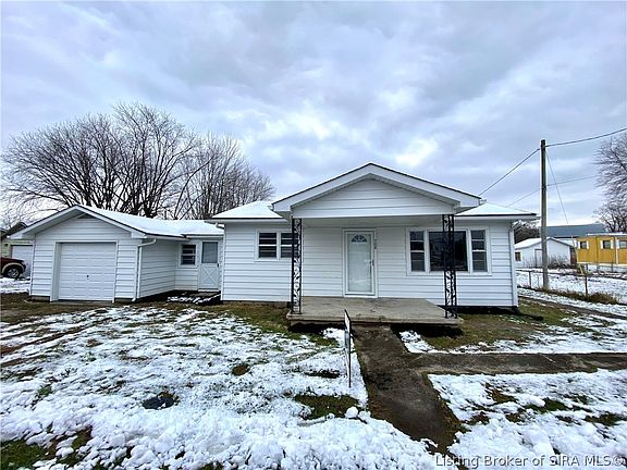 Great solid home just off I-65 at the Memphis exit 12 minutes North of Louisville. Cute restored home with original hardwood flooring, all white aluminum siding, great covered front porch, 15x24 attached garage, fully fenced in .40 acre lot and a lot of upgrades. Roof recently replaced in the last 4 years, main house thermopane windows, updated AC unit and furnace, updated bathroom, paint throughout the entire home, newer appliances, extra insulation in the attic, door handles, used washer and dryer included in the sale, and updated water heater. Large open living room, great sized kitchen with lots of counter and cabinet space. Two bedrooms with deep closets. Recently renovated bathroom with stand up shower, nice vanity trim and flooring. Mud room/potential office space area located in breezeway area between garage and house. The garage is finished out with wall covering, drywalled ceiling, and electric perfect to park a car or even a larger truck. The home qualifies for as little as no money down through the USDA loan program to those who qualify. This is an older home, and is built to last! Agent/listing agent is owner. Buyer/agent to verify taxes, sq ft, school districts etc. data approximate. Agent owned.