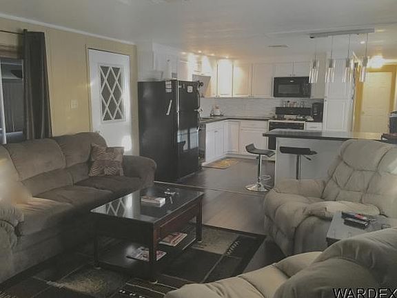 Fully furnished DOLL HOUSE. Near the Colorado river, this amazing remodeled home is loaded with upgrades, high end finishes and amenities. Fully fenced, triple carport, 2 outdoor covered patios (East & west exposures), above ground pool and 2 storage sheds. Carport or side area can be changed to have RV/ Motorhome parking. Enclosed Arizona room offers outdoor entertainments with 2 BBQs and a large sitting area. Newer appliances, refrigerator, microwave, washer and dryer are all included. Hard surface flooring, window coverings, designer lightings and tastefully done kitchen and bathrooms are amazing. Arizona room has a built in Murphy bed, double slider door and can be used as an extra bedroom with separate entry. Kitchen has glass tile back splash, roll out shelves, full appliance package and a serving counter. Home has an Indoor laundry area, large closets and gently used as vacation home. A must see...