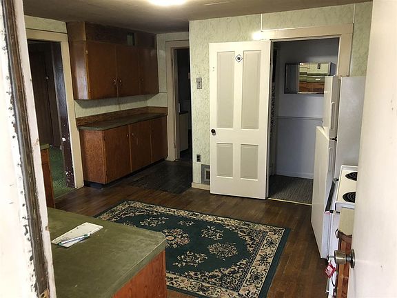 This family home is way bigger than it looks. Its a 5BR/2BA home near the corner of Ryan and White Streets in Hancock. It has 2 sets of stairs so it could be even setup as a duplex with a little effort. It's got a metal roof on the main house, but the small front porch needs a roof. There is hardwood in many of the rooms and likely under the carpeting. The bathroom on the main floor off the kitchen has a shower. The bigger bathroom has a clawfoot tub. The bedrooms are larger sized for an older home, and none of them are walk-thrus. The utility room on the back of the home is just off the kitchen and has the washer and dryer, as well as a large sink and a large wood space heater. The garage has storage for yard stuff and toys, or a smaller vehicle. All the utilities are on and the mechanicals are all in working order. All the city utilities are here: natural gas, city water, city sewer, and telephone/cable/high speed internet. This place has been emptied and cleaned and shows way bigger than it looks. Great starter home or rental looking for a new owner.